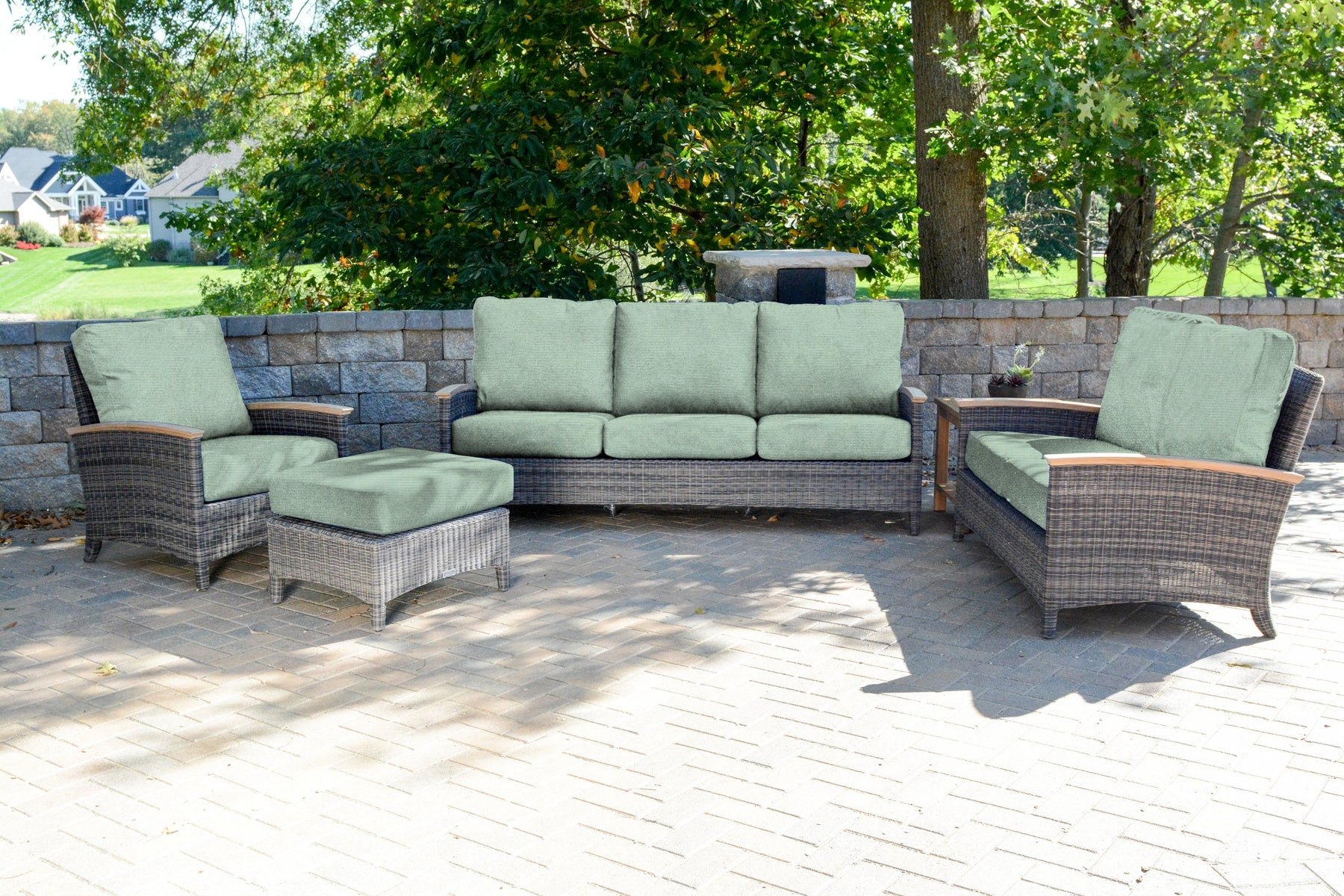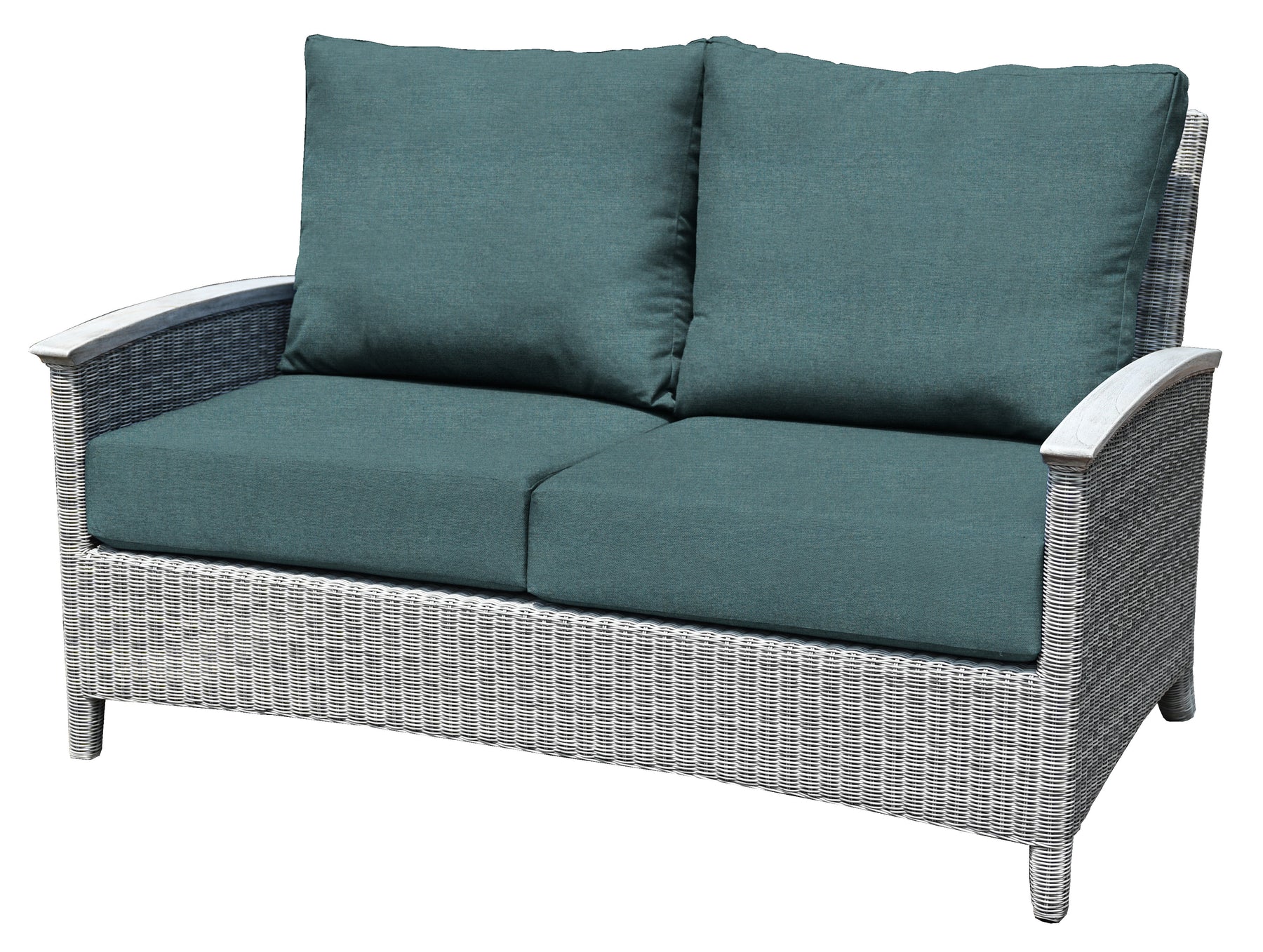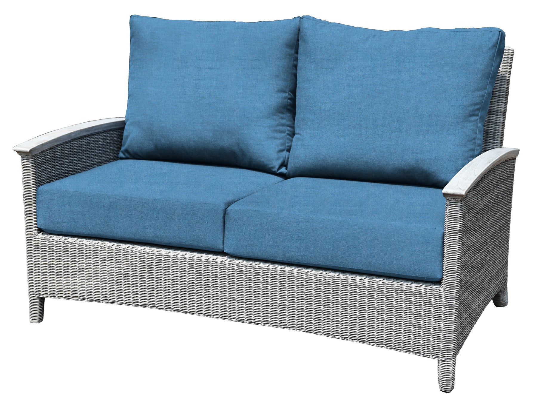 Bella products are made using aluminum frames that are wrapped with handwoven synthetic wicker. Our wicker is UV resistant, colorfast, environmentally friendly, weatherproof, and easy to clean. On Bella products that feature arms, Plantation teak is used as an accent to exude luxury. All Bella cushions are custom-made in-house with foam and Dacron cores covered with Sunbrella® fabric.
