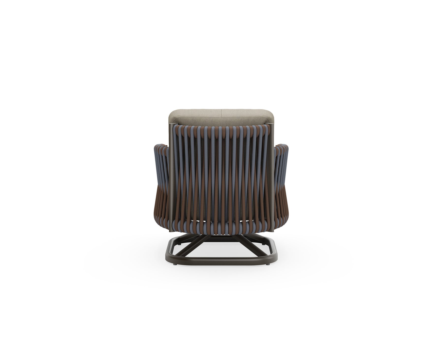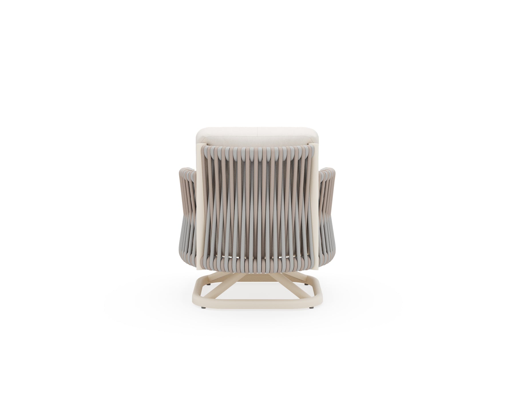 Eve is a handcrafted blend of artistry and sophistication. Its two-tone rope weave, wrapped around a sleek aluminum frame, creates an elegant ombre effect, adding depth and texture. The angled legs nod to mid-century modern design while maintaining a clean, modern look. Eve brings style and comfort to any space.