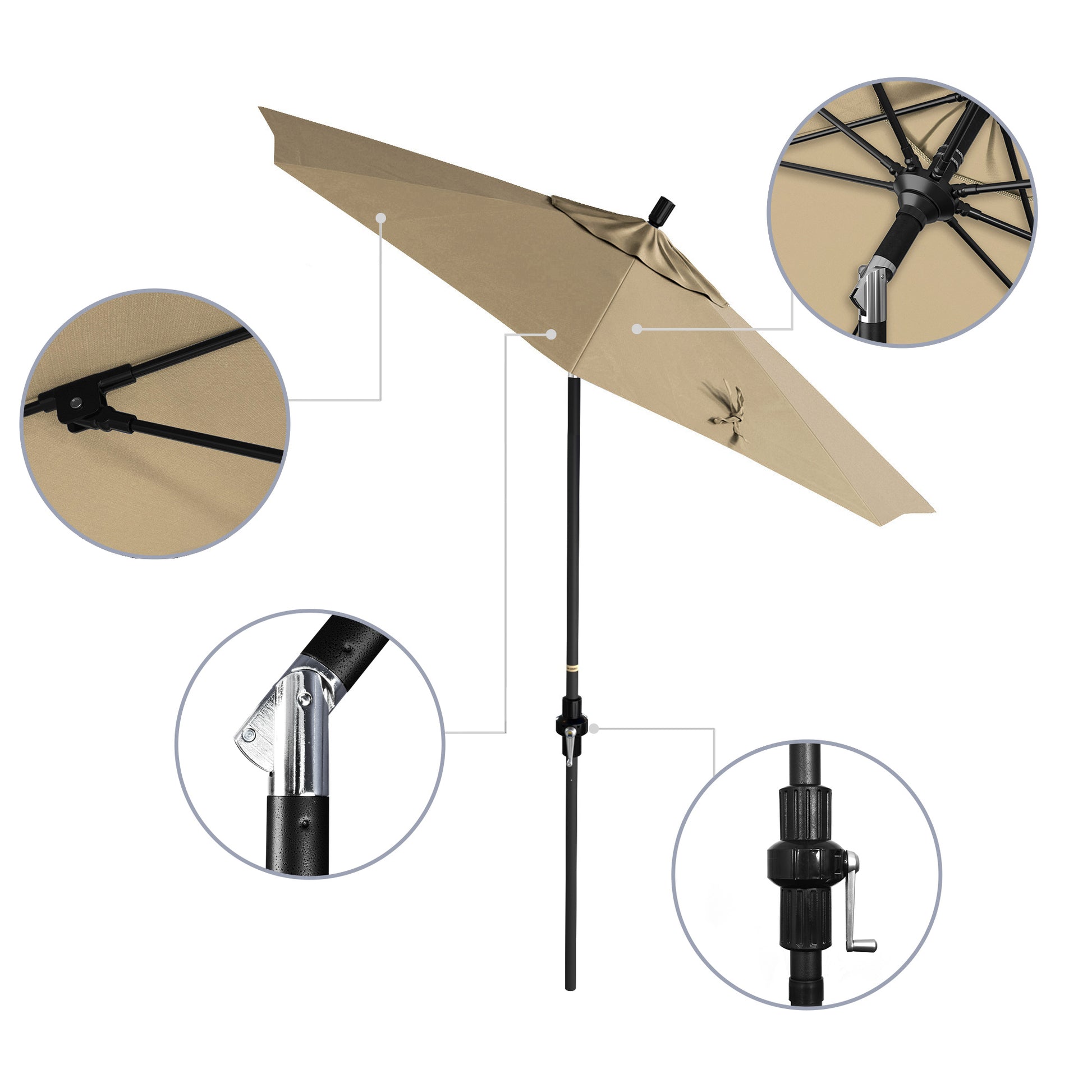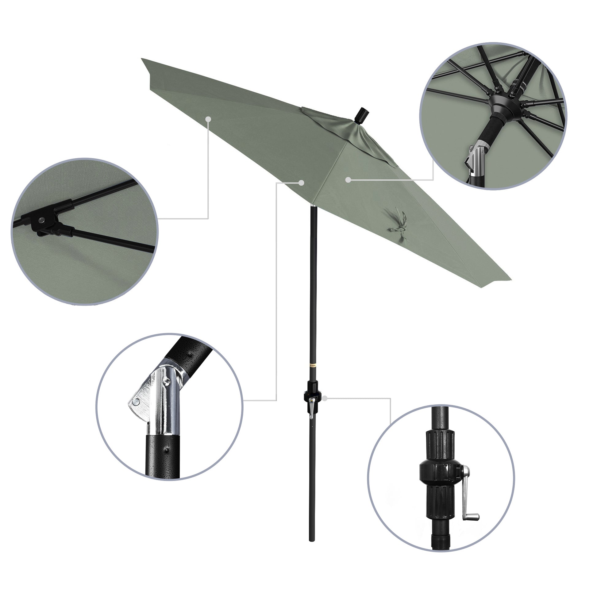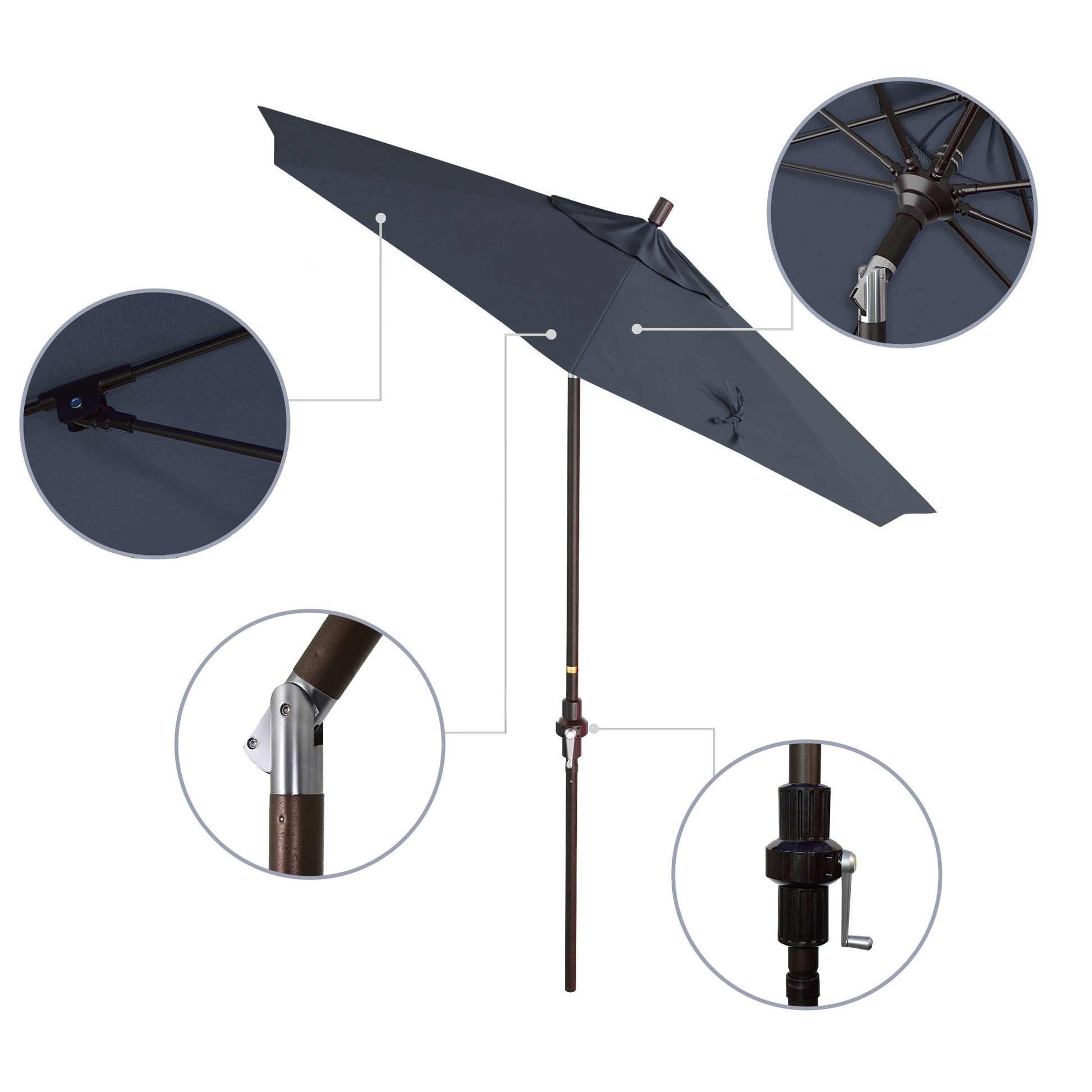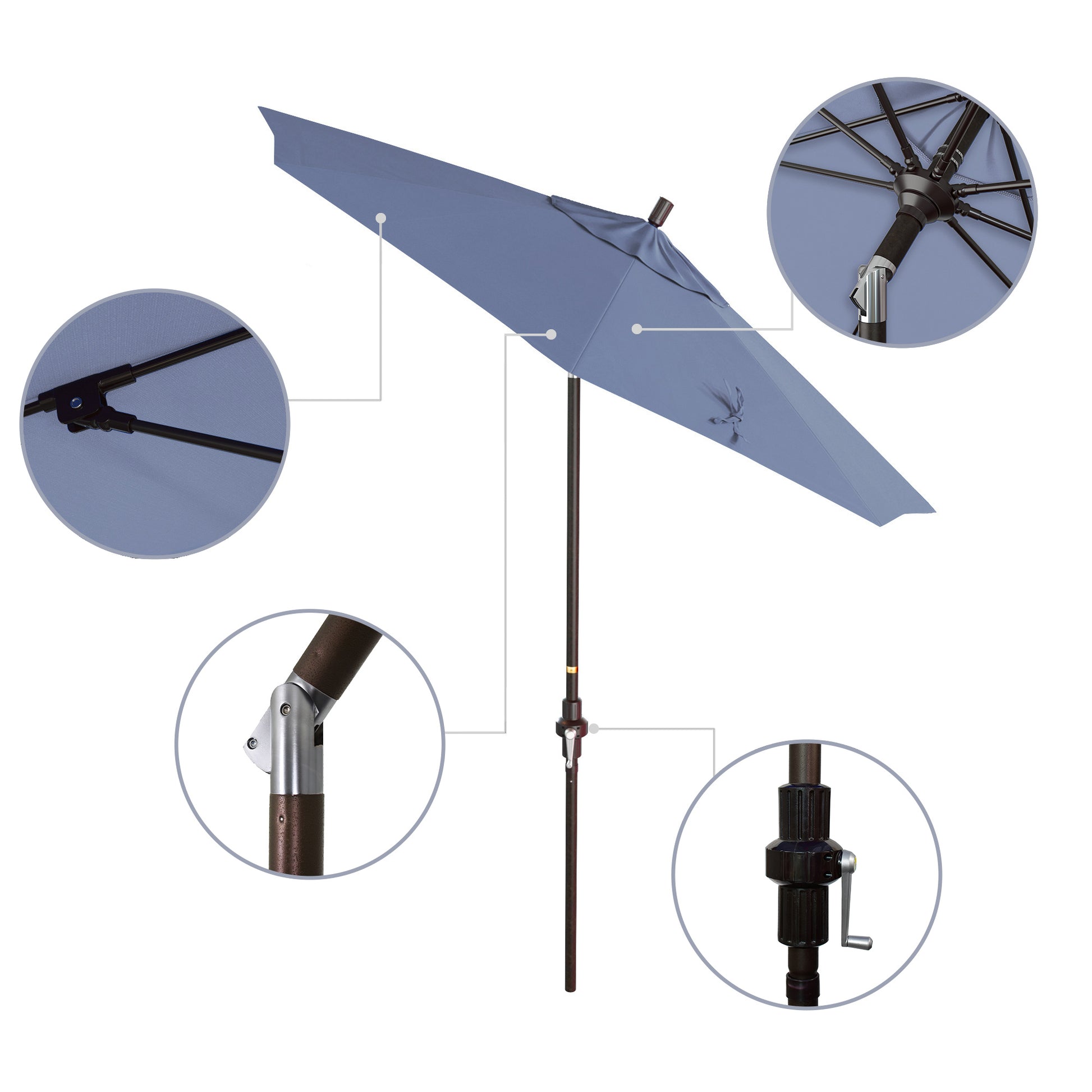 - Crank to Open, Twist to Tilt. We invented the Collar Tilt offering you an effortless way to tilt your umbrella keeping you shaded at all times of the day