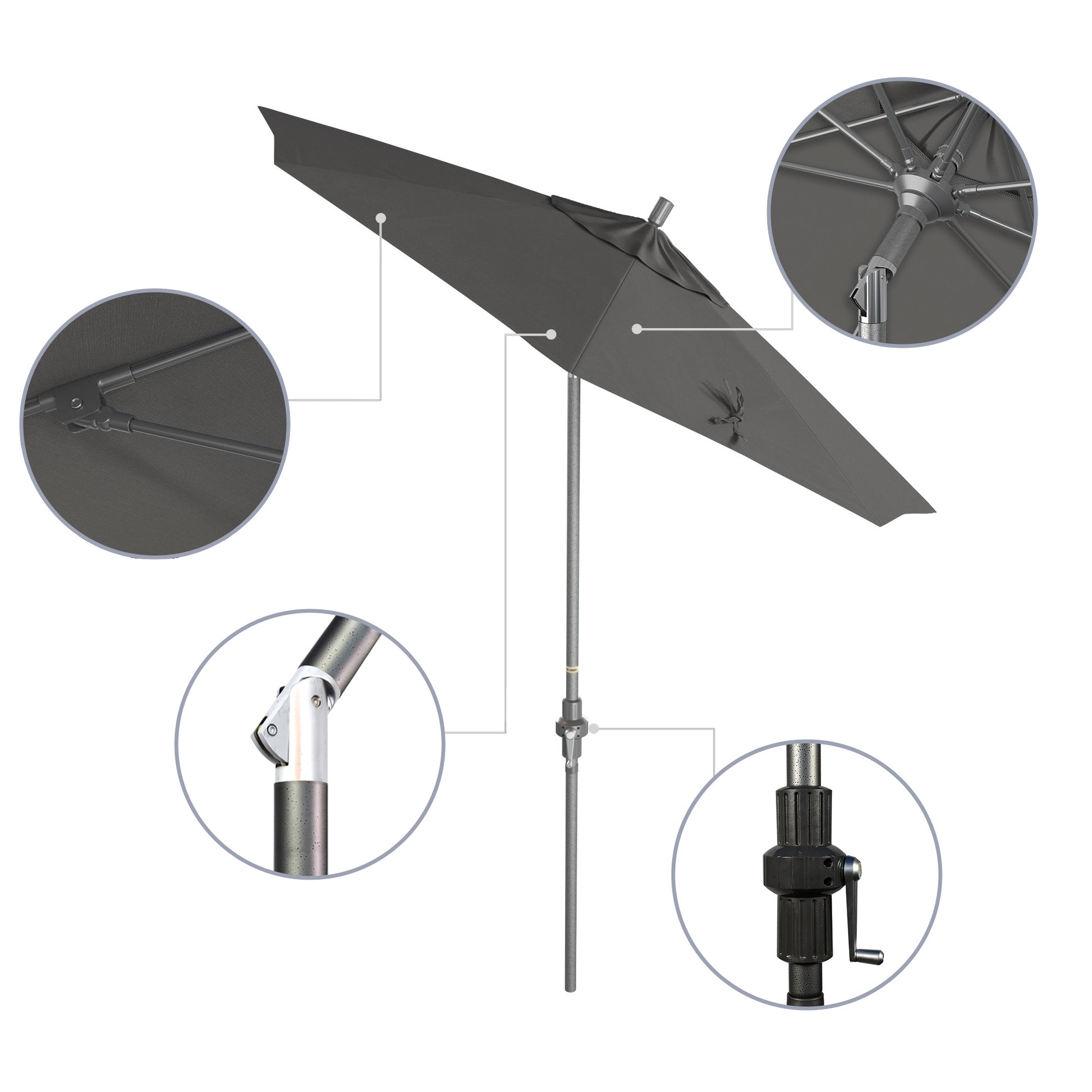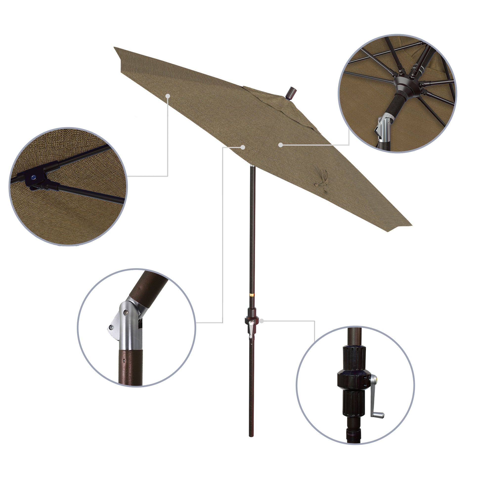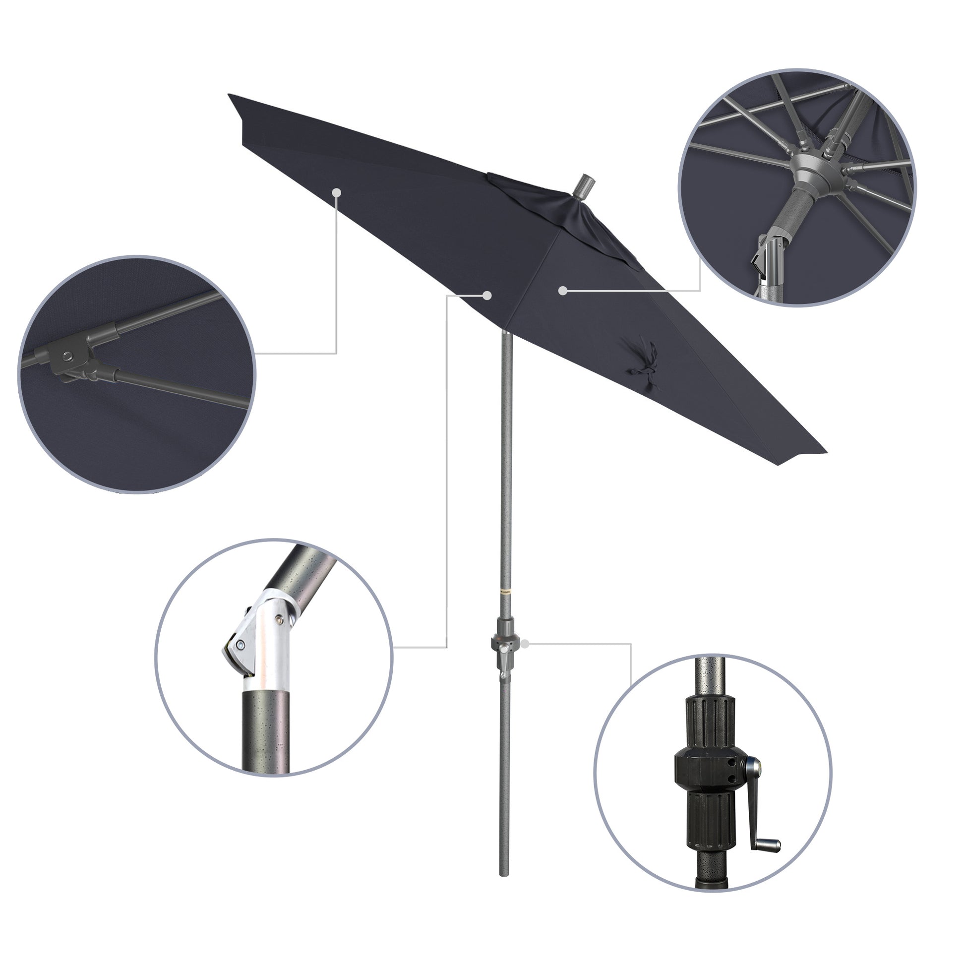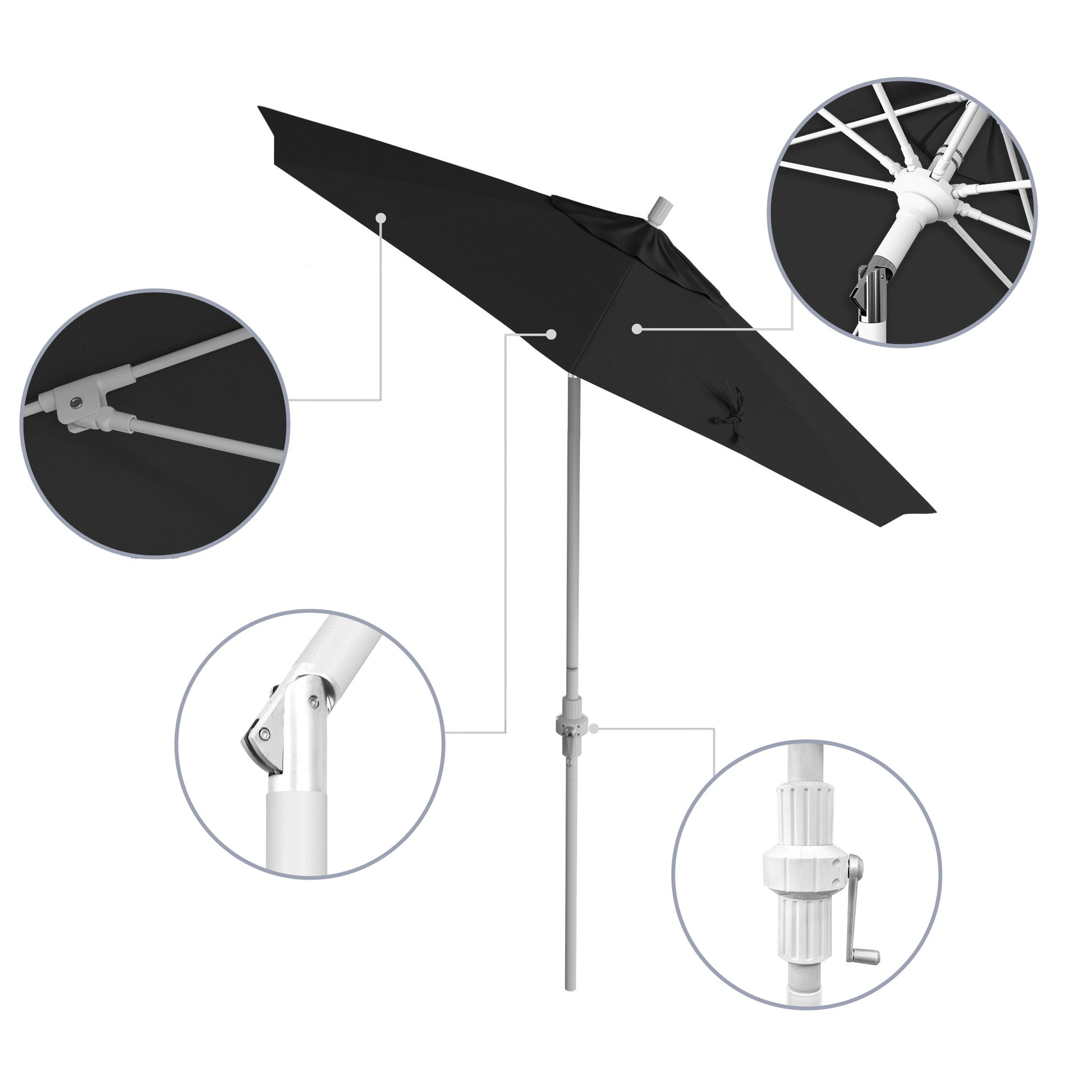 - Crank to Open, Twist to Tilt. We invented the Collar Tilt offering you an effortless way to tilt your umbrella keeping you shaded at all times of the day