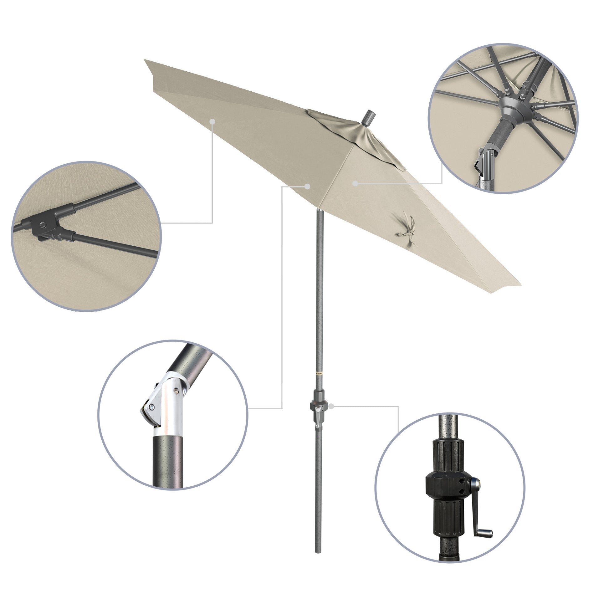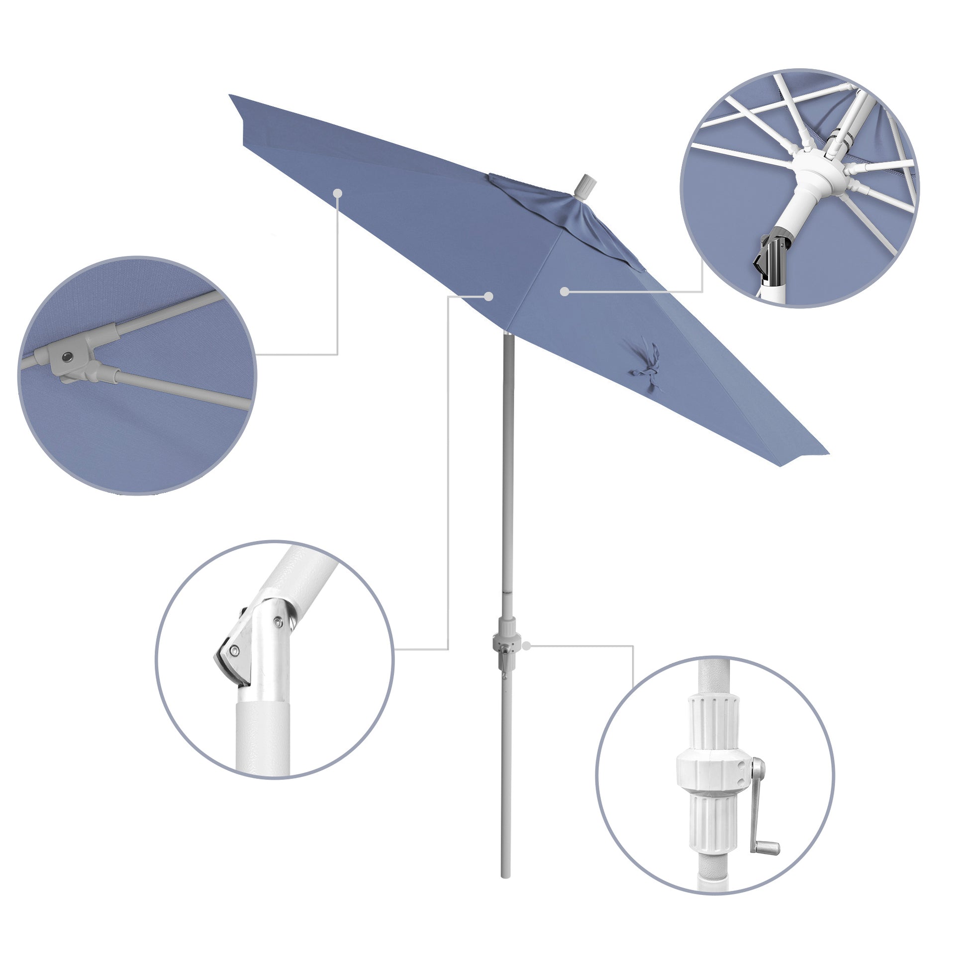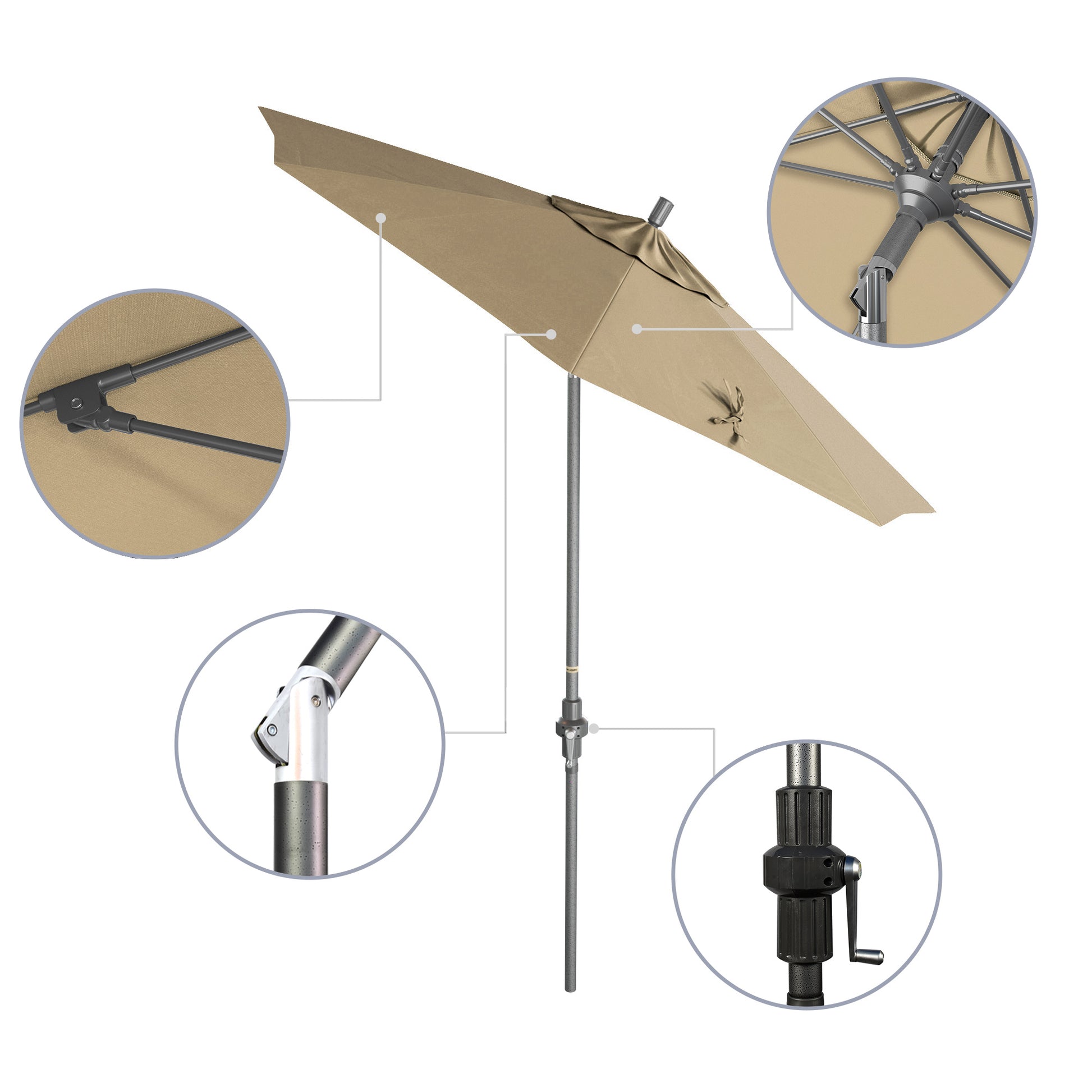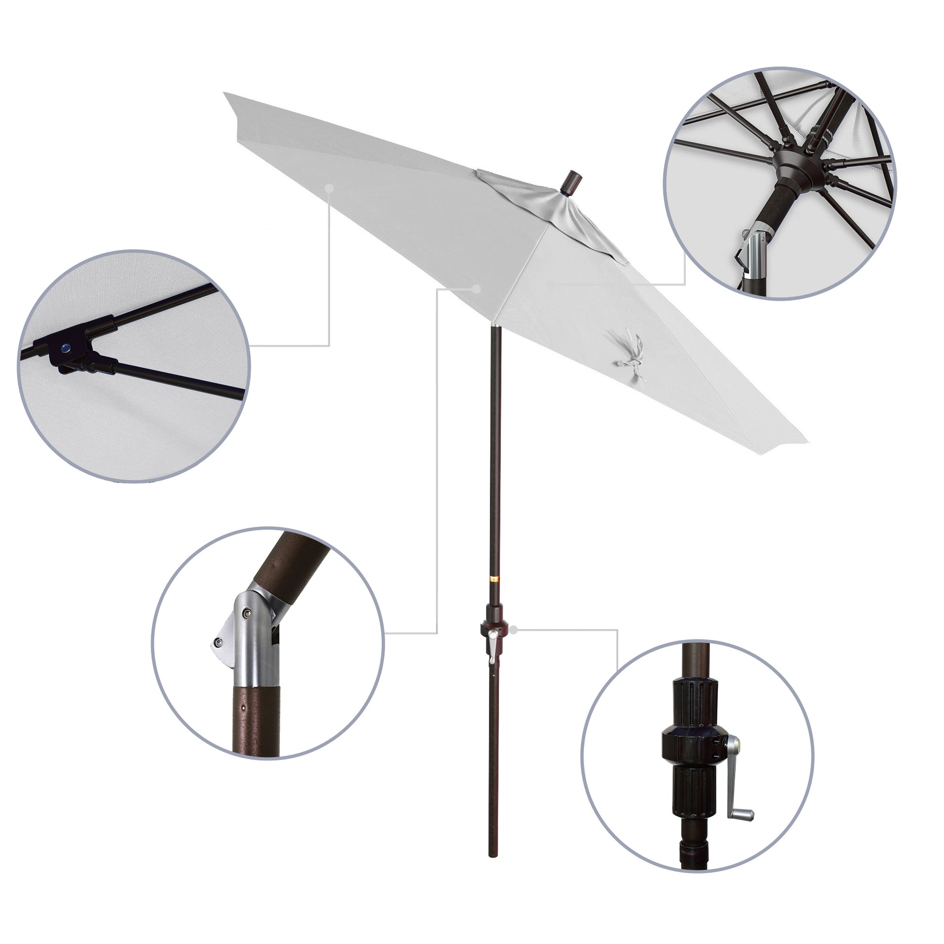 - Crank to Open, Twist to Tilt. We invented the Collar Tilt offering you an effortless way to tilt your umbrella keeping you shaded at all times of the day
