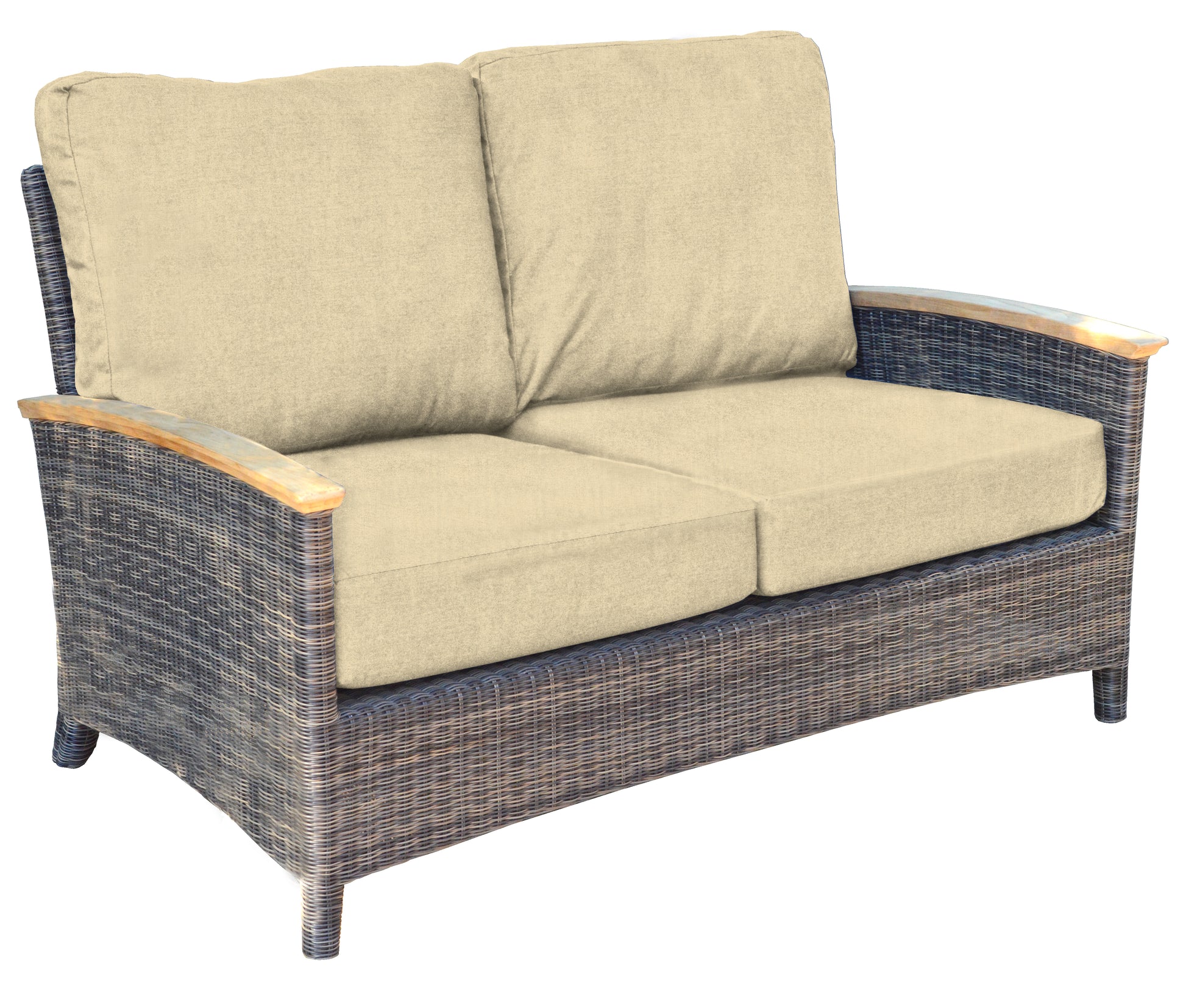 Bella products are made using aluminum frames that are wrapped with handwoven synthetic wicker. Our wicker is UV resistant, colorfast, environmentally friendly, weatherproof, and easy to clean. On Bella products that feature arms, Plantation teak is used as an accent to exude luxury. All Bella cushions are custom-made in-house with foam and Dacron cores covered with Sunbrella® fabric.